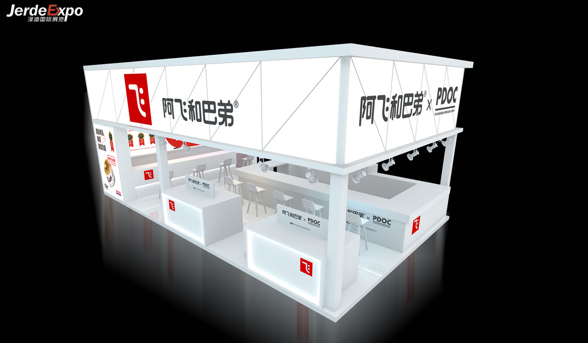 整體設(shè)計理念:阿飛與巴弟位于H-2號館“B1618”本次展臺占地面積為60平方米,四面開布局,色彩延用品牌色-白色,輔助色黑色+紅色,簡單 簡約 大氣風(fēng)格是阿飛與巴弟一直以來慣用風(fēng)格,門頭使用發(fā)光軟膜材質(zhì),整體使用白色光源在夜場中就是展會中最亮的仔!